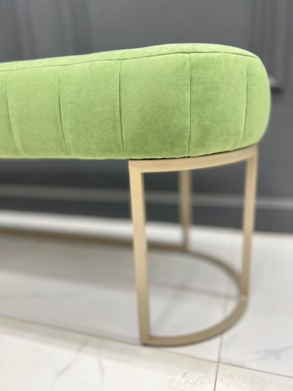 Банкетка “Триумф” на металлическом необычном основании станет украшением вашего интерьера, мягкое сиденье из материала шенилл, мятного оттенка, отличается комфортной посадкой и элегантным внешним видом.