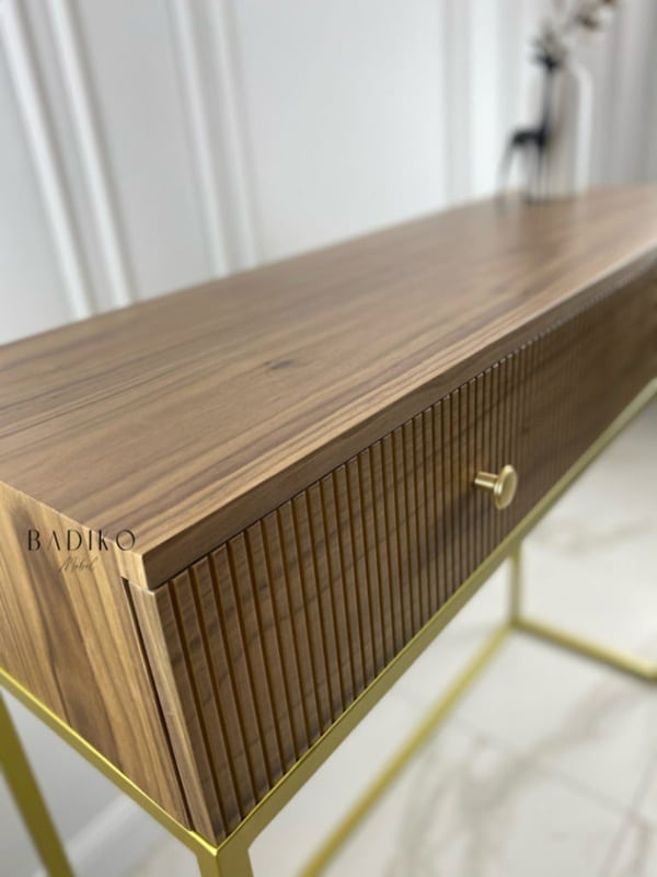 Этот изящный консольный стол Milan органично впишется в любой современный интерьер, придавая ему утонченность и стиль. Его компактный дизайн экономит пространство, не жертвуя функциональностью. Две вместительных выдвижных ящика обеспечивают удобное хранение мелочей, поддерживая порядок. Прочные линии конструкции создают ощущение легкости и визуальной гармонии в комнате. Этот предмет мебели станет идеальным акцентом, объединяя практичность и эстетическую привлекательность.