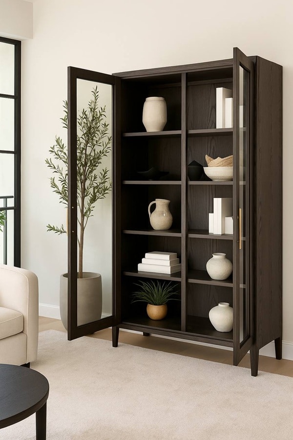 Вместительные полки за стеклянными дверцами позволяют организовать хранение с идеальной аккуратностью — будь то посуда, книги или декор. Шкаф Monti гармонично впишется в интерьеры в стилях modern, contemporary, loft и neoclassic, добавляя пространству глубину и изысканность.